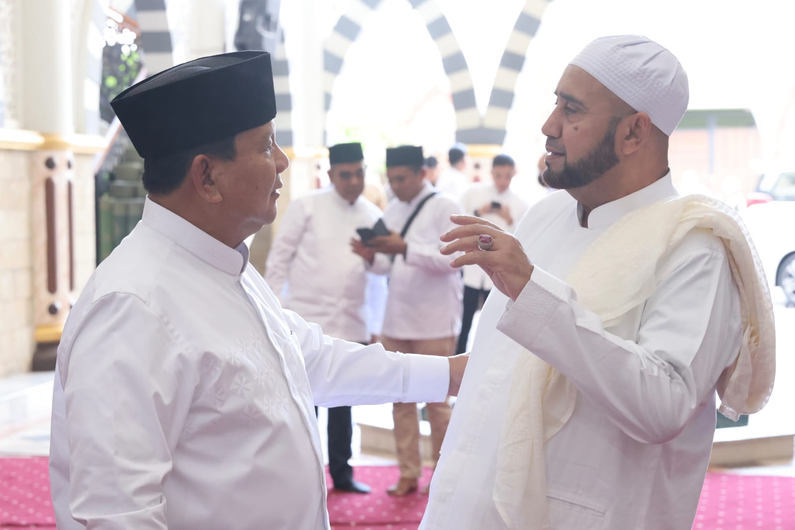 “Apa yang bisa saya bantu untuk pemerintahan saat ini Pak Prabowo?,” tanya Habib Syech.