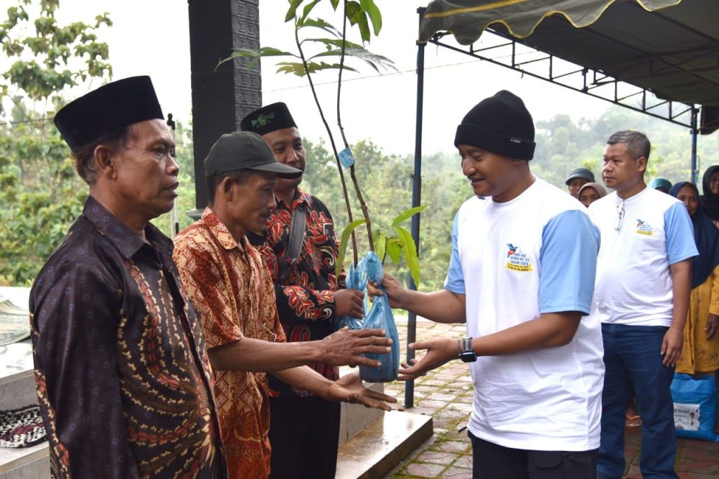 Tak kurang dari 250 bibit tanaman dibagikan kepada masyarakat meliputi beragam jenis tanaman produktif serta bibit tanaman kayu penyimpan air seperti pohon trembesi.